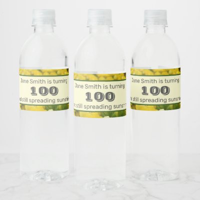 Ad: 100th Birthday Yellow Flower Photo Milestone Water Bottle Label