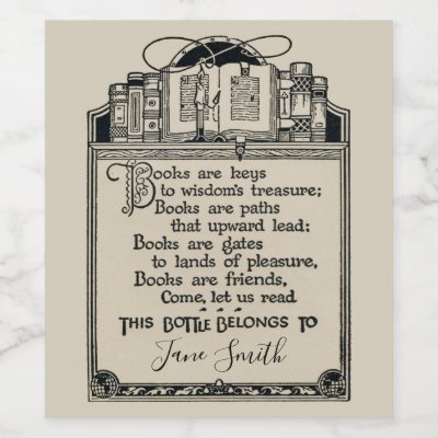 For some who loves to read while having a glass of wine is this antique inspired old bookplate Wine Bottle Label. Personalize this label! myWineLabel