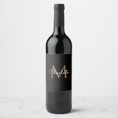 Black Gold Monogram Elegant Script Wine Label
