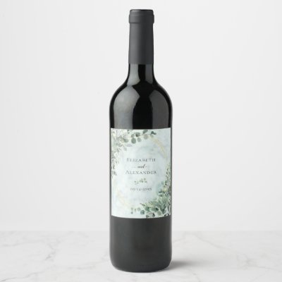 Ad: Elegant Marble Eucalyptus Greenery Gold Wedding Wine Label