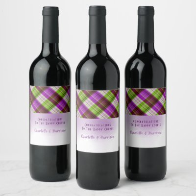 Ad: Purple Green Tartan Plaid Wedding Wine Label
