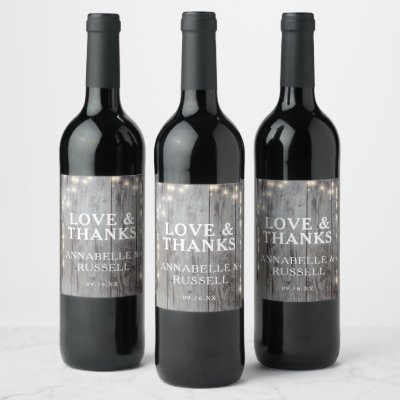 Ad: Rustic Wood Lights Thank You Wedding Wine Label