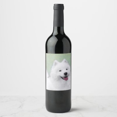 Samoyed Painting - Cute Original Dog Art Wine Label