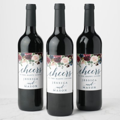 Burgundy Navy Wedding Wine Labels Favors