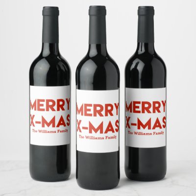Ad: Merry X-Mas Modern Red Typography Christmas Wine Label