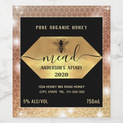 Modern sparkle honey comb mead design. myWineLabel