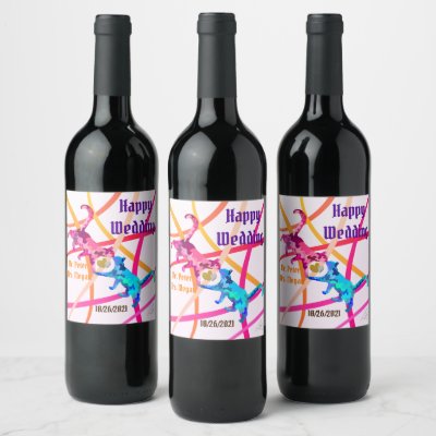 Personalized Love Pink and Blue Cat Abstract Wine Label